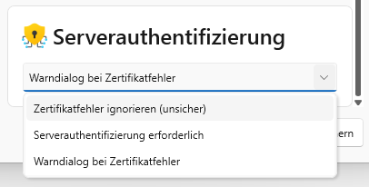 Bei allen RDP-Verbindungen “Serverauthentifizierung” auf “Zertifikatfehler ignorieren” setzen