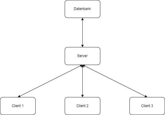 Einmals den Server, der sich zur Datenbank verbindet und eine zentrale API für die Clients bereitstellt.