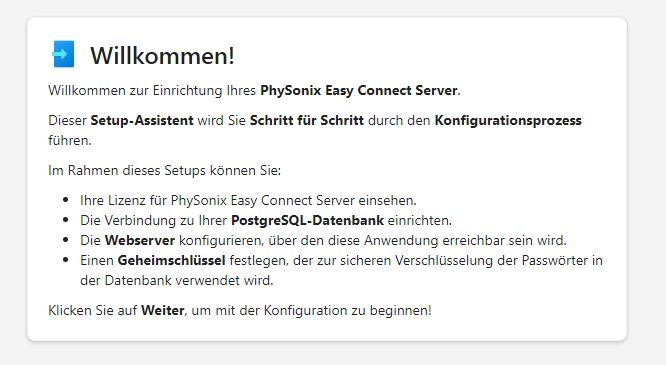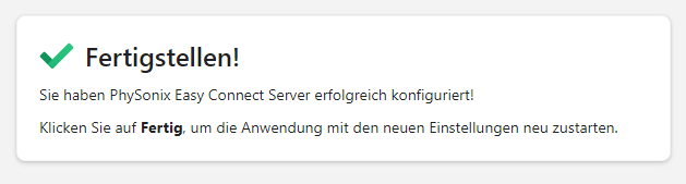 Nach der Installation können Sie den PhySonix Easy Connect Server über http://localhost:7444 konfigurieren.