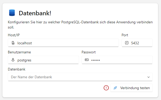 Nun konfigurieren Sie die Verbindung zu Ihrer PostgreSQL-Datenbank. Geben Sie dazu die Host-Adresse oder IP der Datenbank, den Benutzernamen und das Passwort ein.
