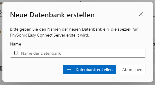 Im dem nun angezeigten Dialog haben Sie die Möglichkeit, eine neue Datenbank speziell für den Easy Connect anzulegen.